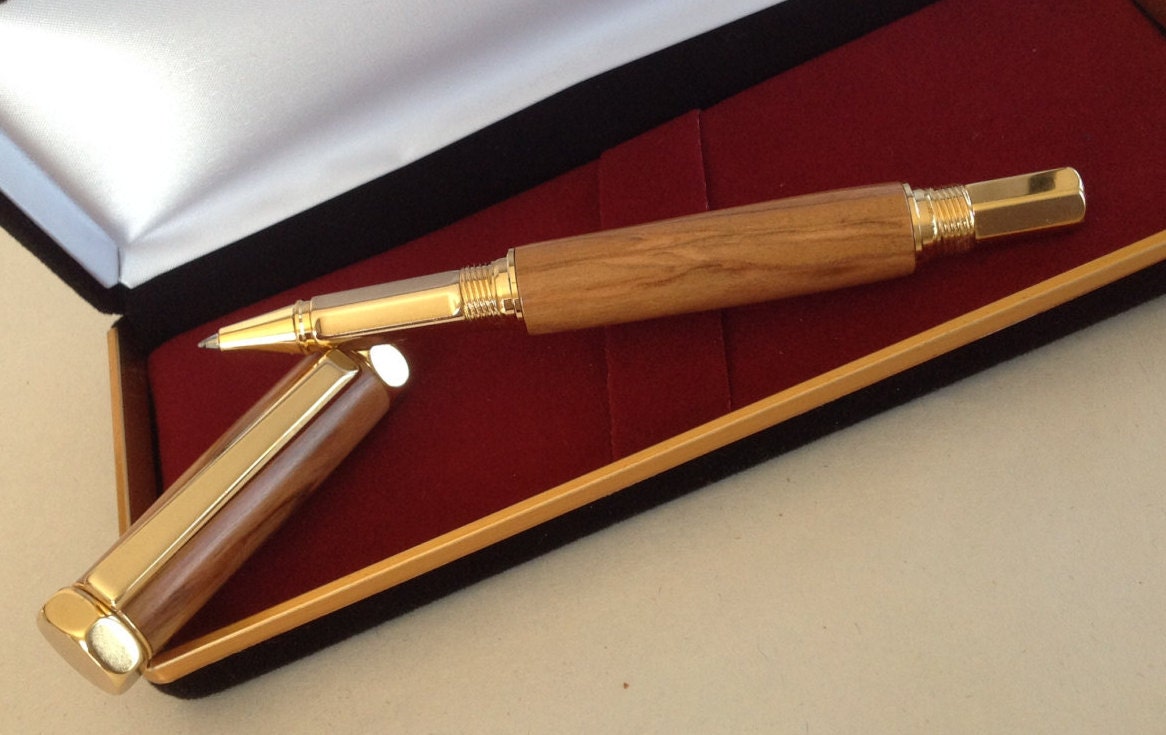 This is a hefty pen great for office use and makes a great impression for your desk. This pen comes in a White Satin and Red Felt lined gift box. This a great for the man or the lady in your life. I can make this pen with a variety of exotic woods and even deer or elk antlers on quest.