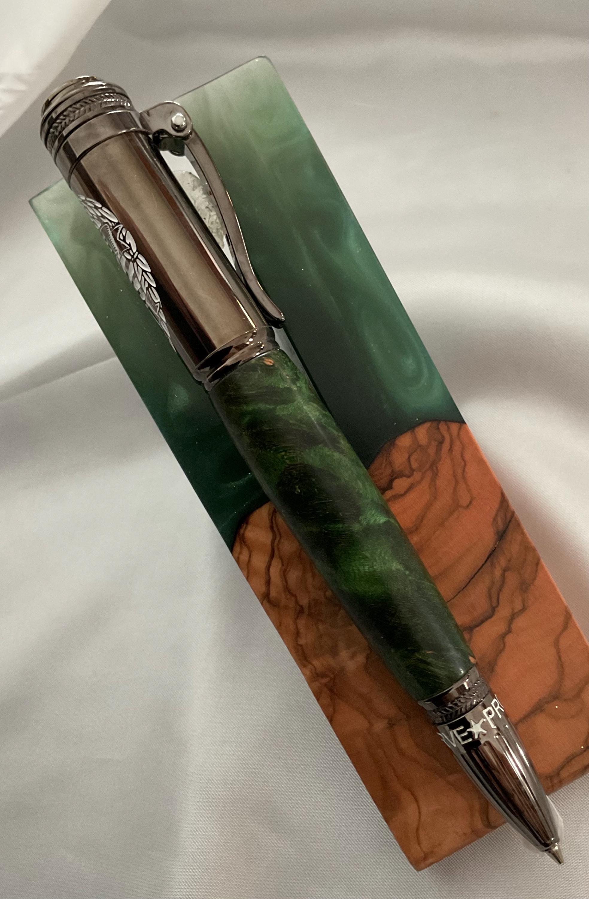 Here is the perfect gift for any police officer. The details of the pen pay homage to those who put their lives on the line every day. The back end of the pen features a rotary-engraved and enamel filled detail of a traditional police badge; featuring the words: Police Dept. A laser engraved Coat of Arms symbol resides on the pen top and is framed by commemorative casted laurel branches mirrored on the pen tip. The pen clip features an enameled Thin Blue line. The click mechanism is a super quiet, smooth action and reliable click mechanism and uses a smooth writing Parker style refill.