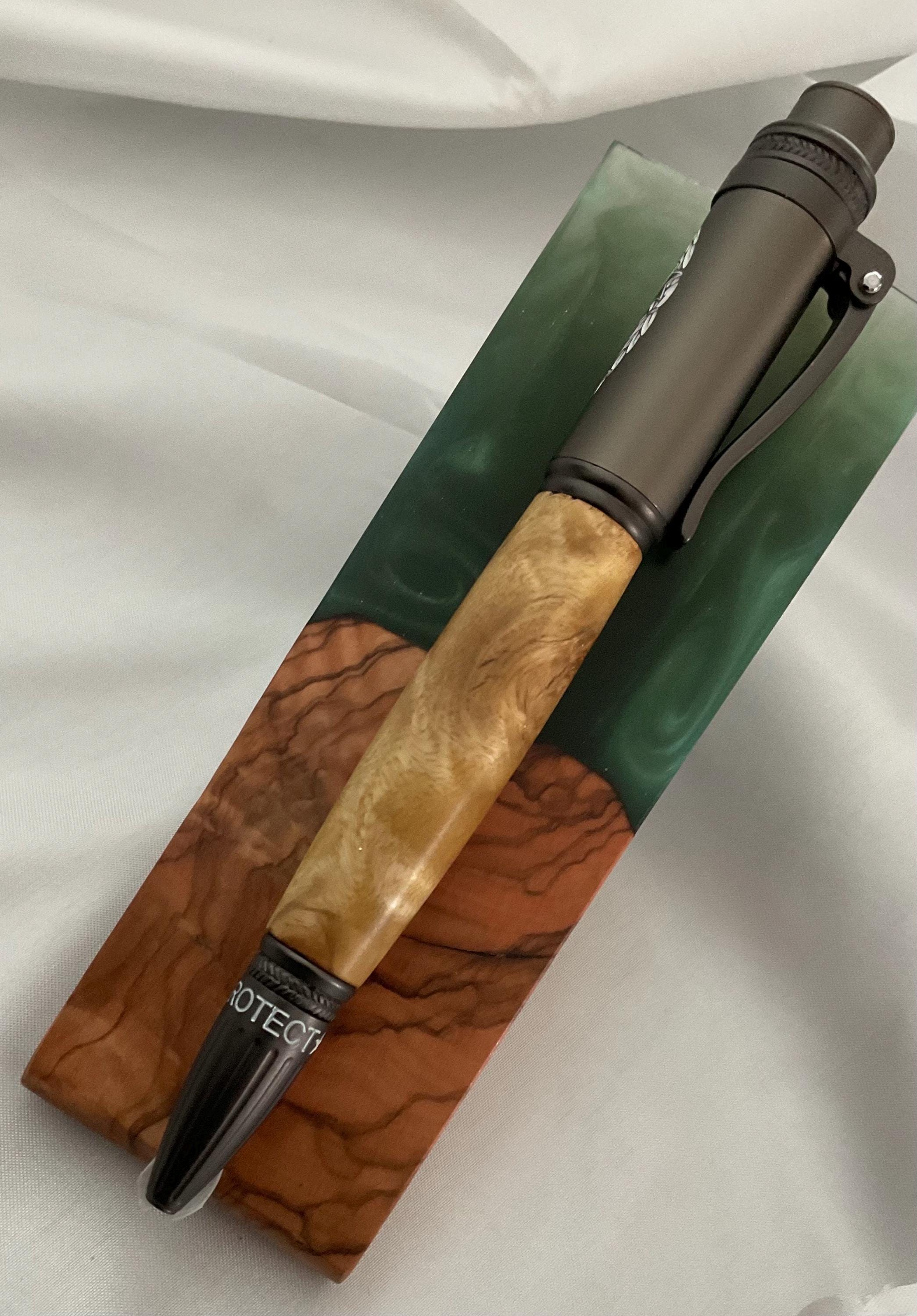 Here is the perfect gift for any police officer. The details of the pen pay homage to those who put their lives on the line every day. The back end of the pen features a rotary-engraved and enamel filled detail of a traditional police badge; featuring the words: Police Dept. A laser engraved Coat of Arms symbol resides on the pen top and is framed by commemorative casted laurel branches mirrored on the pen tip. The pen clip features an enameled Thin Blue line. The click mechanism is super quiet, smooth action and reliable click mechanism and uses a smooth writing Parker style refill.